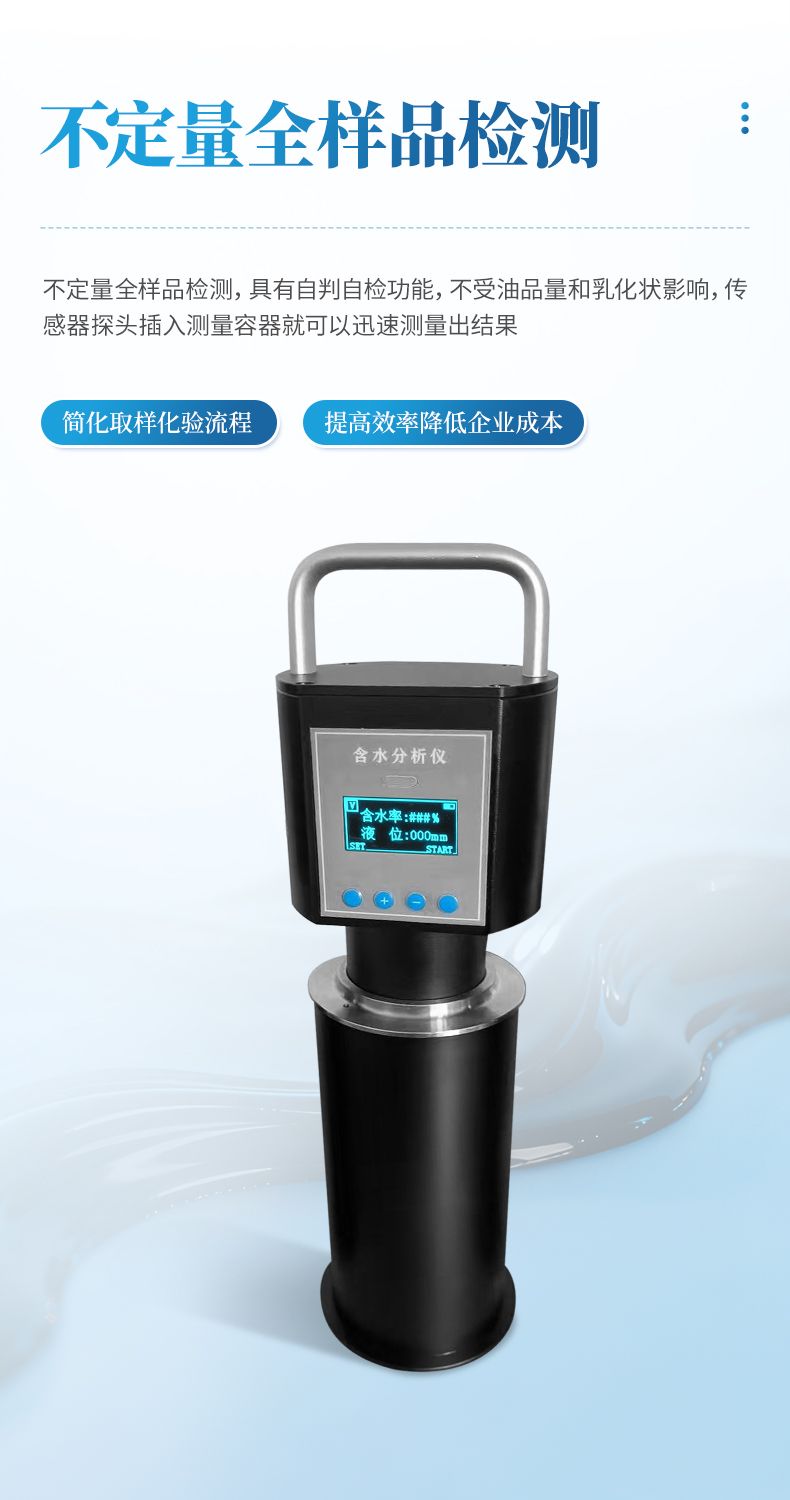4、使用過程中省去了較耽擱時間的冷凍去明水,均勻攪拌、蒸餾、人工計算等流程。將測量探頭插入取樣量杯(量杯可以直接用取樣筒代替)中就可以迅速給出測量出結果。
