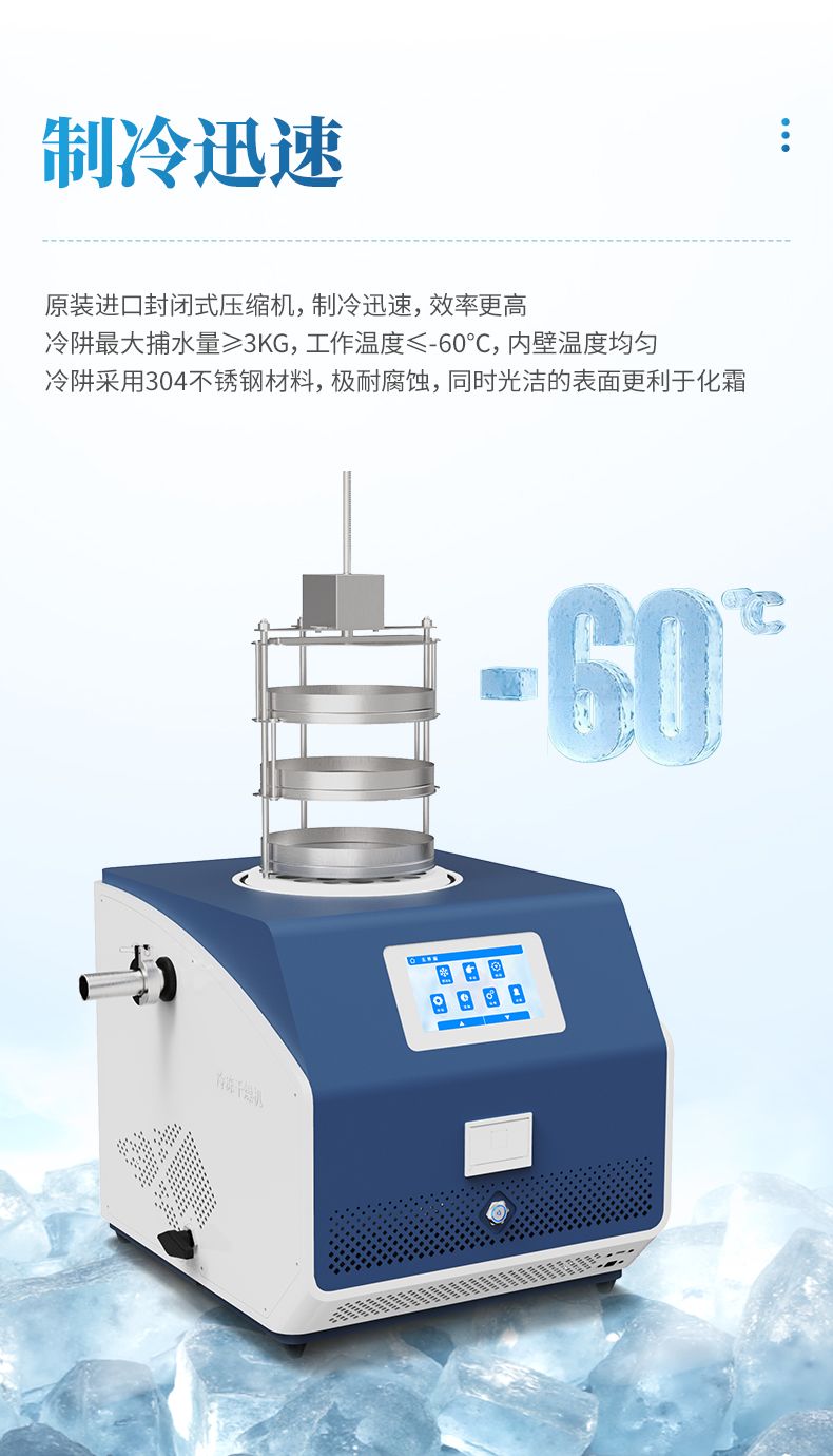 3. ?化工行業?:凍干機在化工行業中用于生產催化劑、化學原料、顏料等產品的生產和保存。通過去除水分和揮發性成分,保證產品的質量和純度。