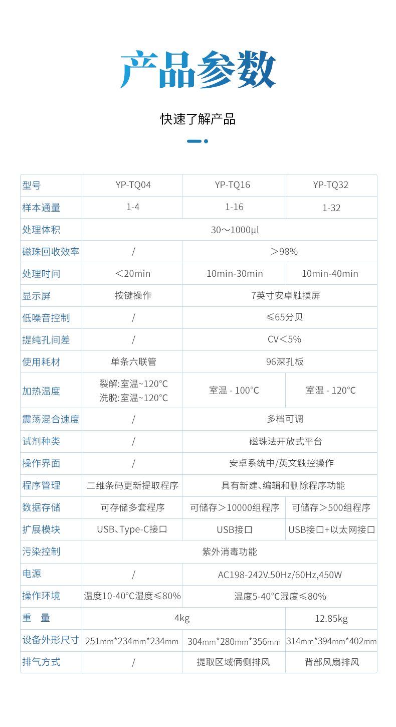 核酸提取儀通過磁珠法提取核酸,選擇相應的試劑盒就可以自動的從多種樣品材料如血液、組織、細胞中分離純化高純度的核酸。具有兼容性強(適配預封裝提取試劑盒,也可適配單頭份試劑)、提取速度快、提取回收率高、操作簡便的優點,是分子生物學實驗室檢測試驗的得力“助手”。可廣泛應用于科學研究、分子診斷、動植物疫病檢測等領域。