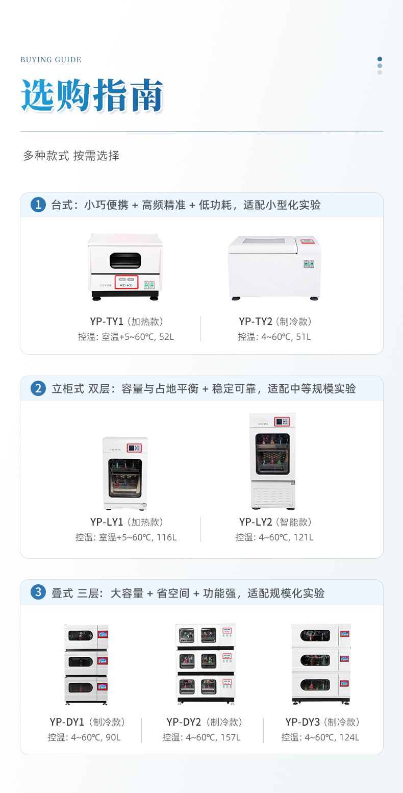 臺式恒溫小型振蕩器專為需求用地面積小的用戶設計。具有小外形體積,大工作空間的特性。可以放置在堅固的臺面或地面。該型搖床裝備PID控溫系統和無刷直流電機控制系統,可滿足對溫度和速度有較高要求的用戶需求。