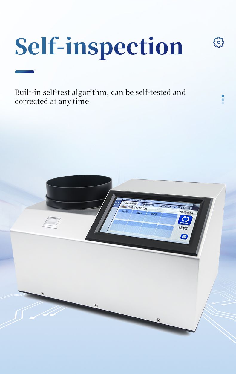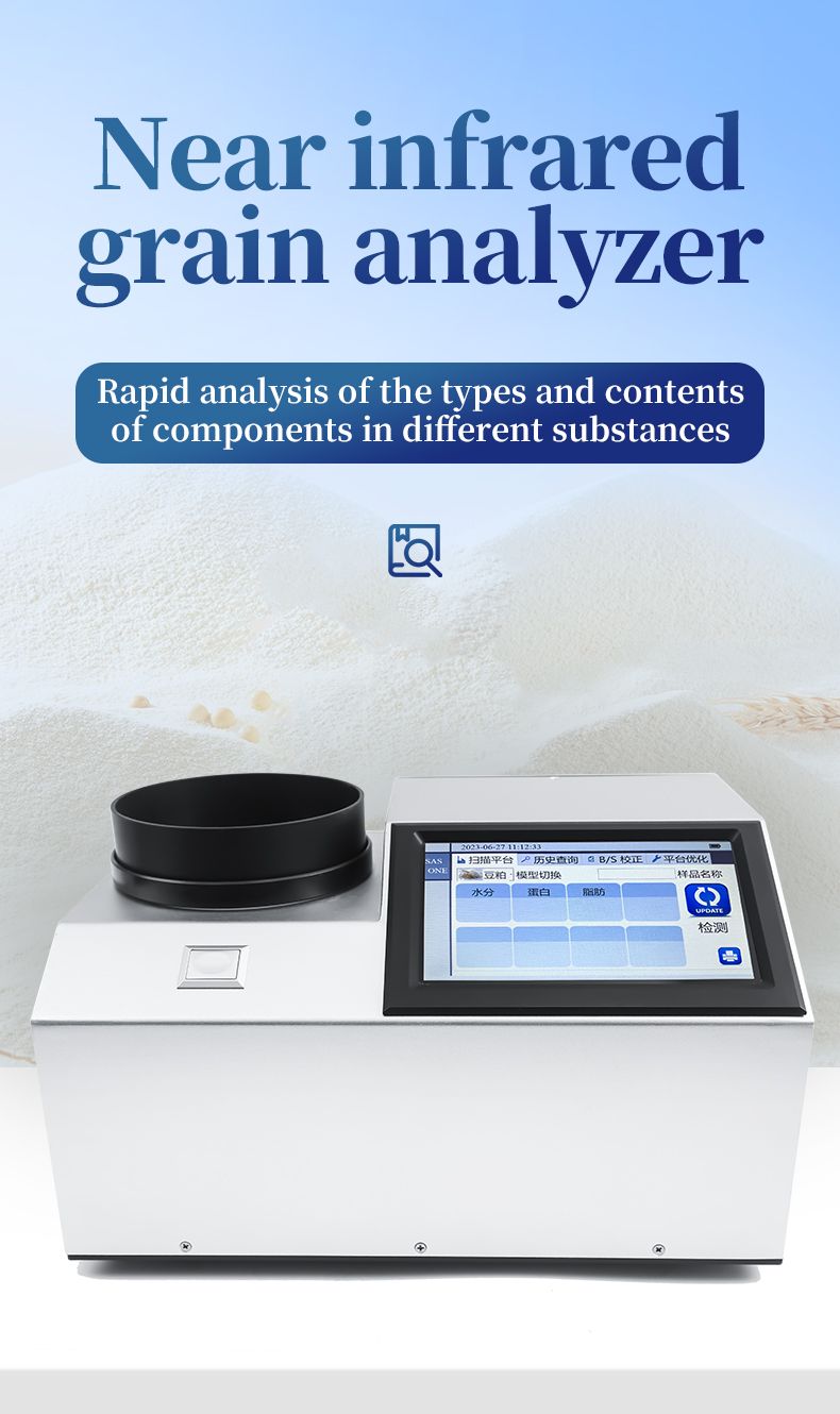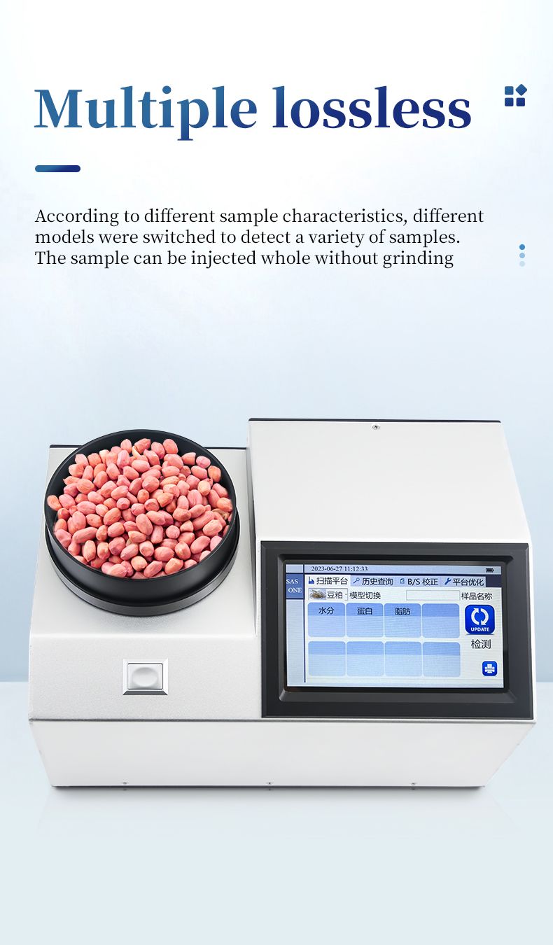 This instrument is a near-infrared (NIR) spectroscopy analyzer. It can quickly analyze the types and contents of components in different substances (such as protein, moisture, fat, fiber, ash, etc.) based on the spectra generated when the sample is irradiated by near-infrared light. Models can be added according to customer requirements.