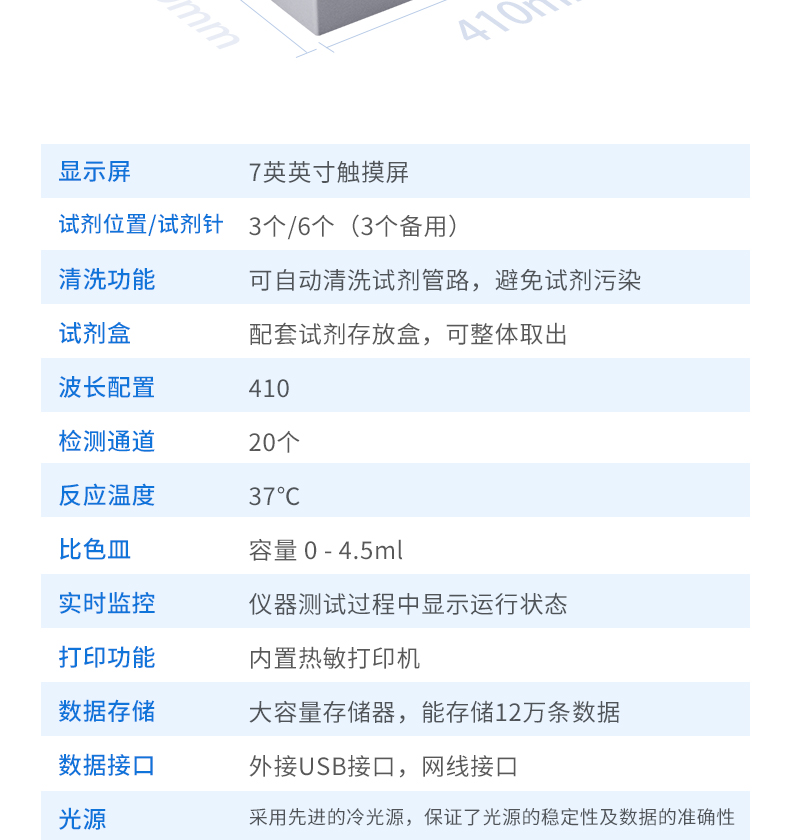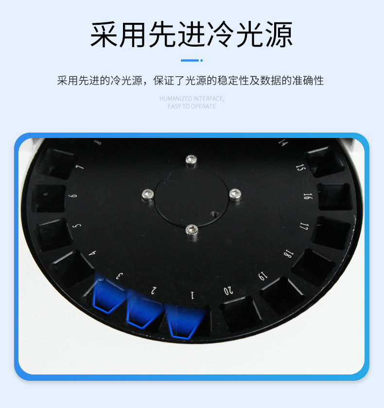 4.采用先進的冷光源,保證了光源的穩(wěn)定性及數(shù)據(jù)的準確性