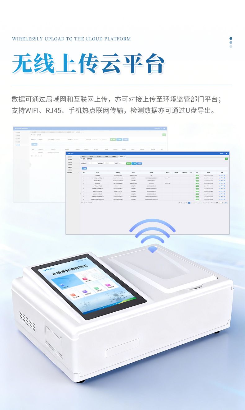 2.配置云監控平臺,檢測結果可直接無線傳至平臺,進行水質長短期分析,輔助管理;