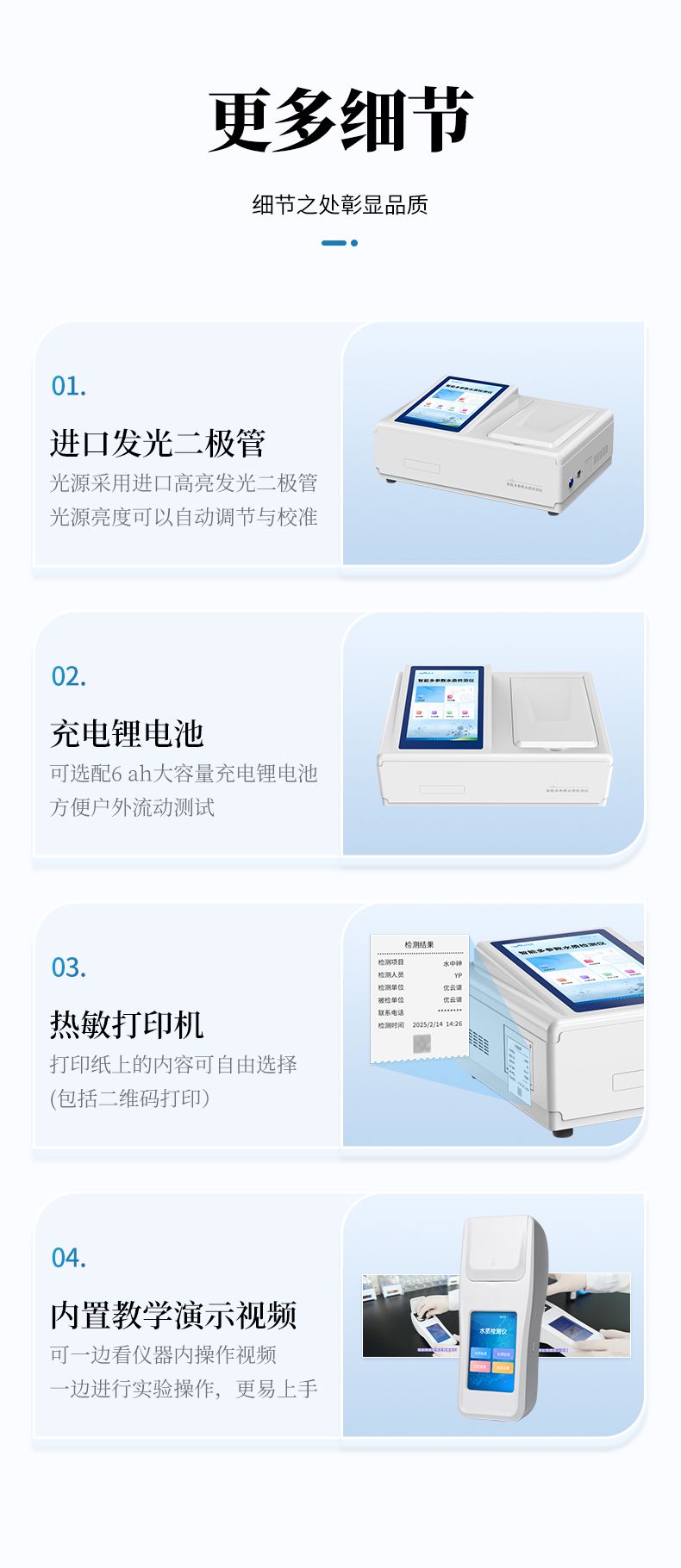 3.采用精密比色池設(shè)計,使用光源一致,可以解決由于光源誤差帶來的檢測結(jié)果誤差問題,檢測結(jié)果更加精準(zhǔn);