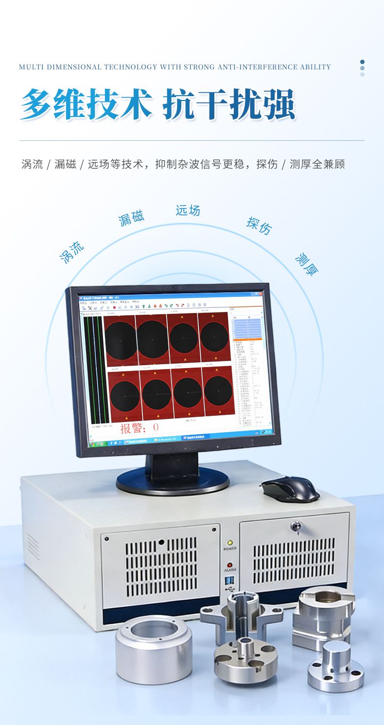 渦流探傷儀最高可配十六個物理檢測通道,是汽車、石化、冶金、機械等行業對金屬構件的在線、離線或役前、在役檢測的通用儀器,檢測過程中不需耦合介質,亦不需接觸工件,易于實現自動化。且由于有多個檢測通道,能夠滿足多條生產線或單個工件的多個檢測面的一次性探傷要求,適用于焊接鋼帶、抽油桿、閥門桿、銷釘、齒輪、輪轂、滾針軸承、空芯軸和螺銓等機械零部件以及金屬管、棒、線材和型材的探傷。