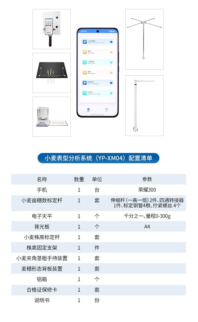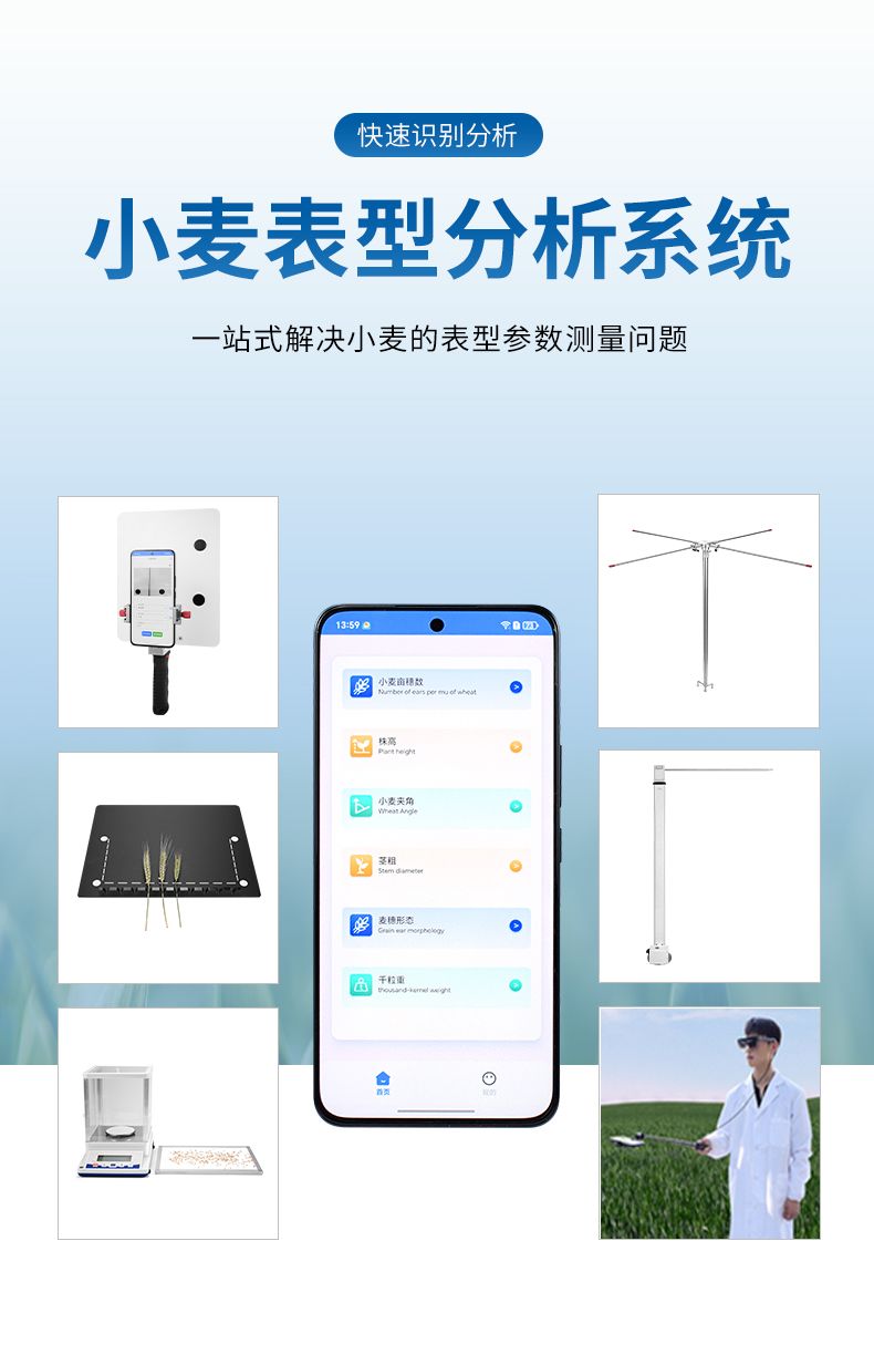 4)麥穗形態(tài)測(cè)定儀依托手機(jī)視覺(jué)技術(shù),通過(guò)AI圖像矯正算法一鍵獲取穗長(zhǎng)、小穗數(shù)等關(guān)鍵指標(biāo)。全系統(tǒng)實(shí)現(xiàn)田間快速取樣、批量分析及數(shù)據(jù)互聯(lián),為育種優(yōu)化、產(chǎn)量預(yù)測(cè)和功能基因解析提供智能化解決方案。