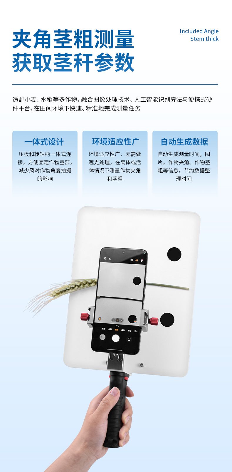 3)夾角莖粗測(cè)量?jī)x適配小麥、水稻等多作物,快速獲取莖稈形態(tài)參數(shù);