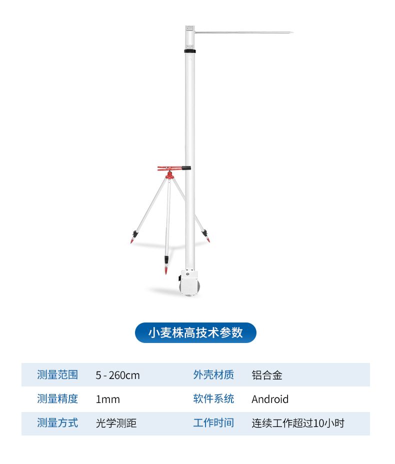 2)株高測(cè)量?jī)x依據(jù)不同生長(zhǎng)期標(biāo)準(zhǔn)(幼苗期/拔節(jié)期/灌漿期等),智能區(qū)分偽莖高度、真莖高度及植株全長(zhǎng);