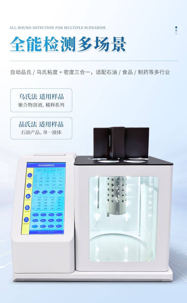 9.自動粘度,自動烏氏粘度,自動密度三合一,可以隨意選擇,節(jié)約成本,增加工作效率。